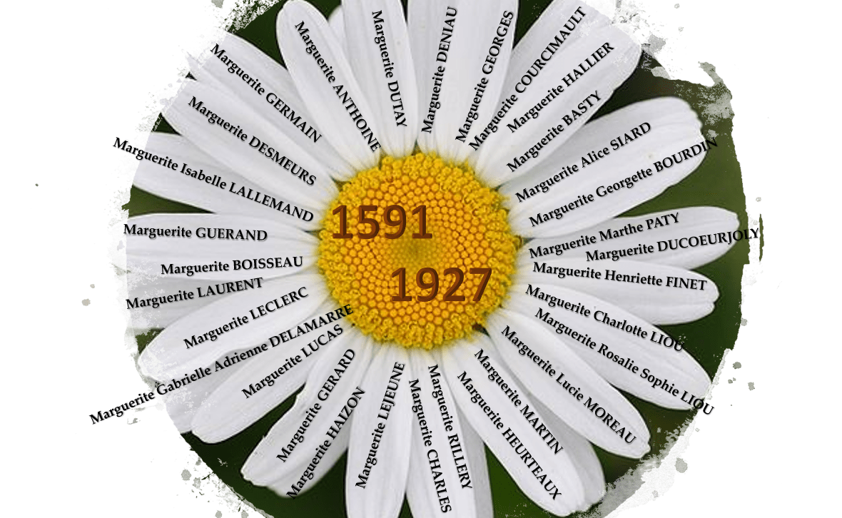 Des bouquets de Marguerite, notre arbre généalogique en a plein les branches : 31 femmes exactement dont 17 sur la lignée directe des Sosa, portent ce joli prénom annonciateur du printemps.