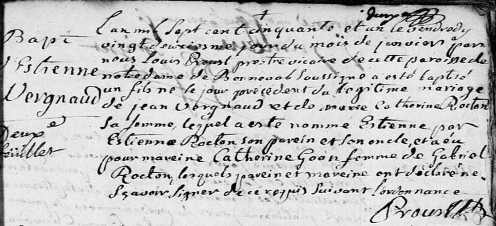 Exactement 26 ans avant, Etienne naît dans cette même paroisse au domicile de ses parents Jean et Marie Catherine ROCTON. Fait volontaire ou pure coïncidence, nul ne le saura.