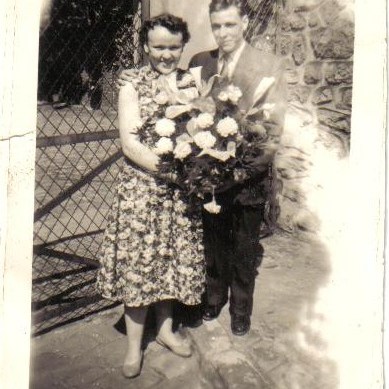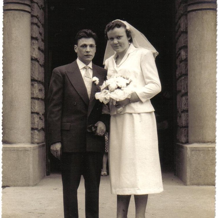 Puis dans les années 50, il rencontre celle qui deviendra sa femme, Monique Julienne SIARD, une vitriote aux origines normandes, forte en caractère. Leur photo de fiançailles me fait toujours autant sourire : Pour cacher la différence de taille, elle était dans le caniveau tandis qu’il trônait sur le trottoir !!