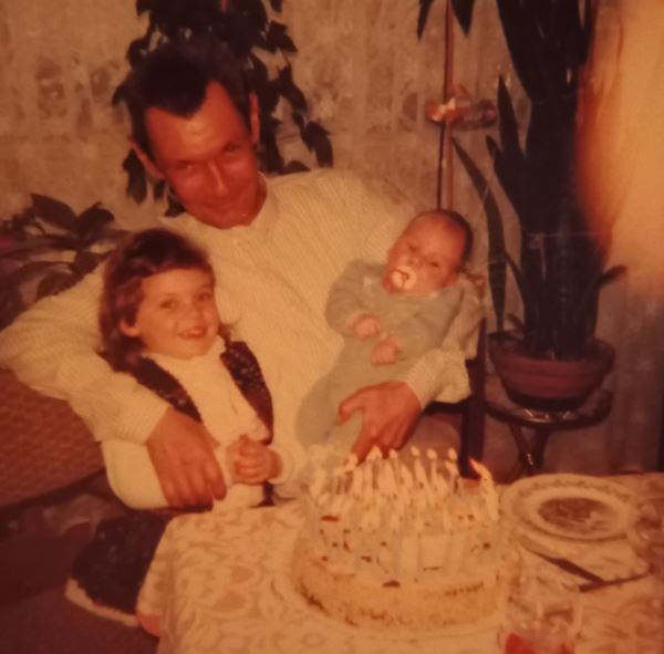 Cette photo a exactement 40ans, nous voici en 1982, le 07 Mars tombait un dimanche cette année-là, belle occasion pour réunir la famille autour d’un bon gros gateau ! Mon grand-père paternel Albert Louis HOUEL est né le 03 Mars 1932. Il fêtait donc ses 50 ans. Mais avant la dégustation, on tire le portrait de tout le monde autour de lui ! Personne n’y échappe ! Mais qui est donc cette petite fille souriante et qui semble bien fière de prendre la pose ? Et bien c’est moi !!! Et le petit bébé c’est mon frère Emeric !! Ai-je eu le droit d’aider pour souffler toutes ces bougies ? Ai-je eu le droit à une belle part de gateau ? Tout cela fait partie des souvenirs des plus âgés que moi. Mais il semblerait que mon « pépère » soit bien content de nous avoir autour de lui pour fêter cet évènement.